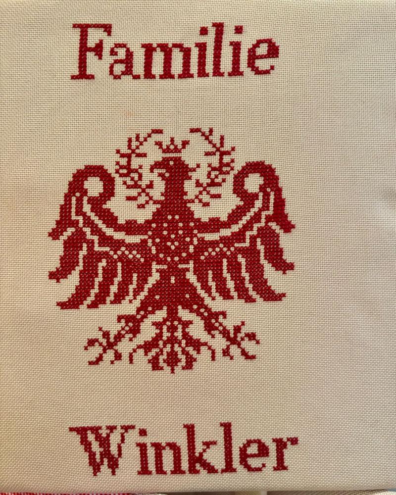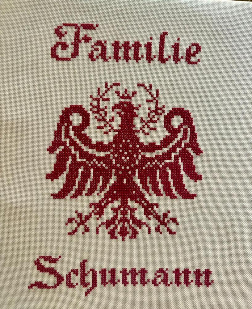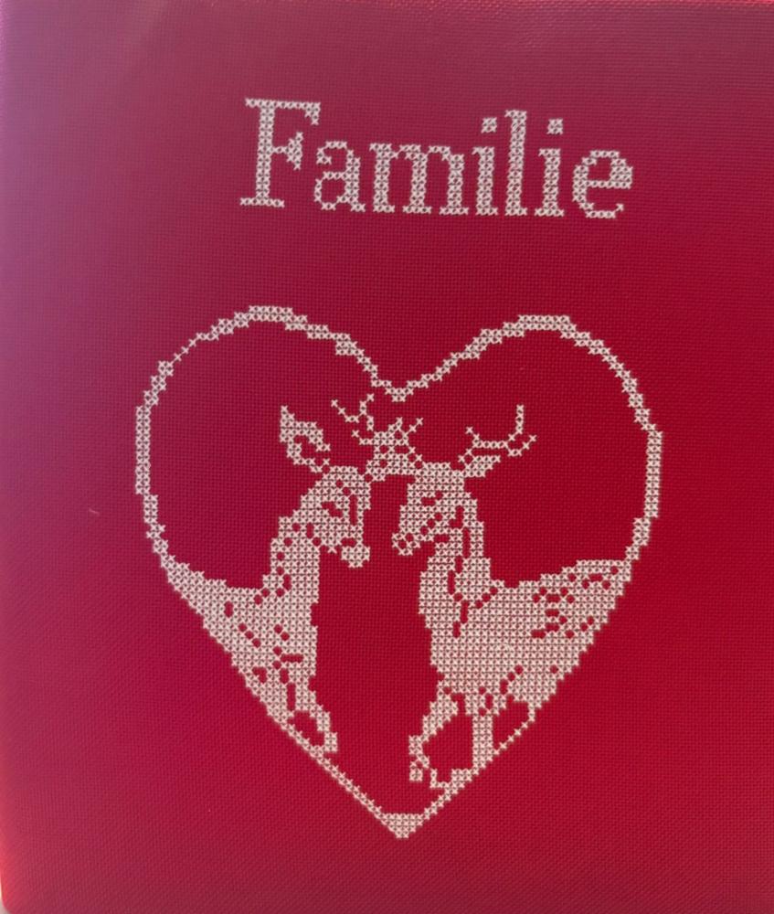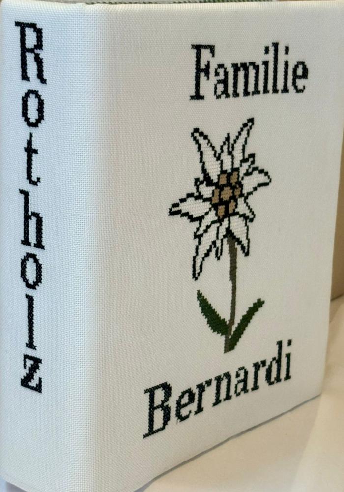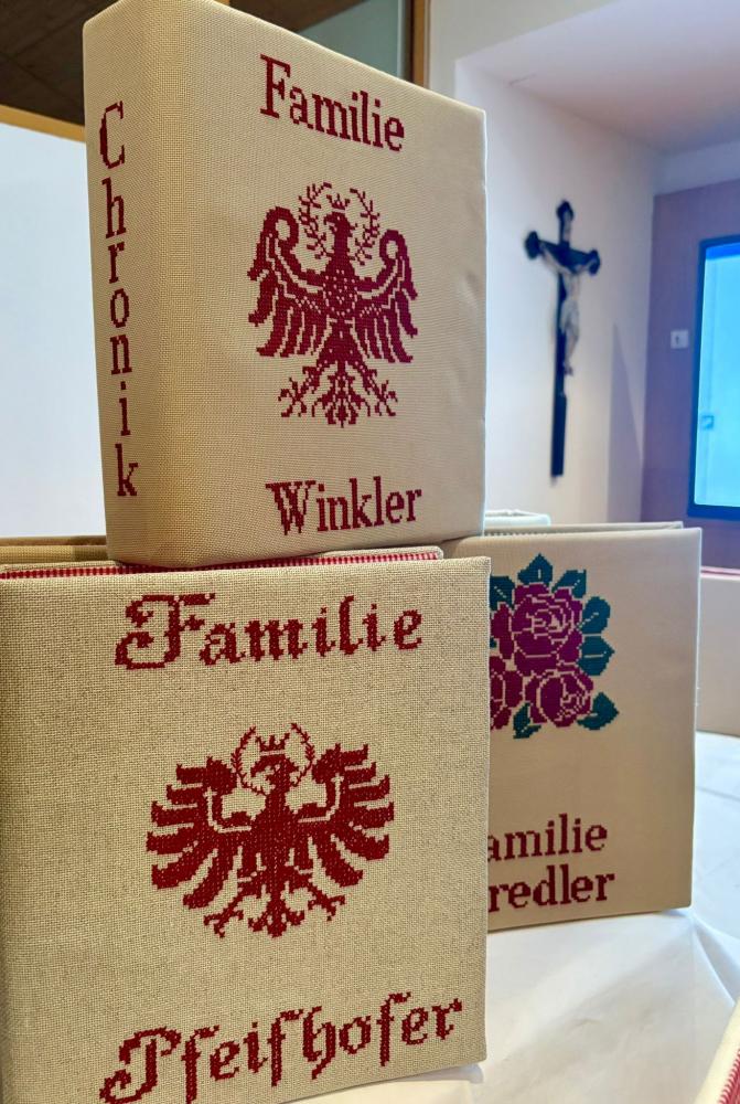 Die wunderschönen Chronikmappen wurden vom 1. Jahrgang 2024/2025 mit viel Geduld und Geschick in traditioneller Kreuzstichtechnik gefertigt.